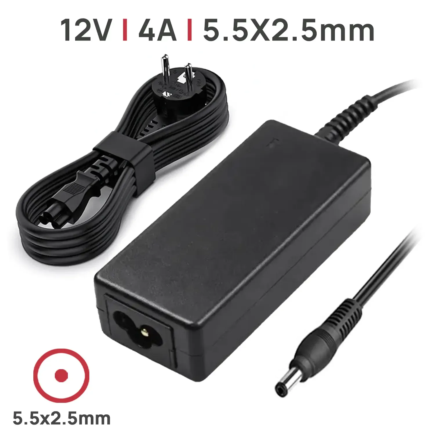Clavija: 12V 4A 5.5 X 2.5mm (48W)