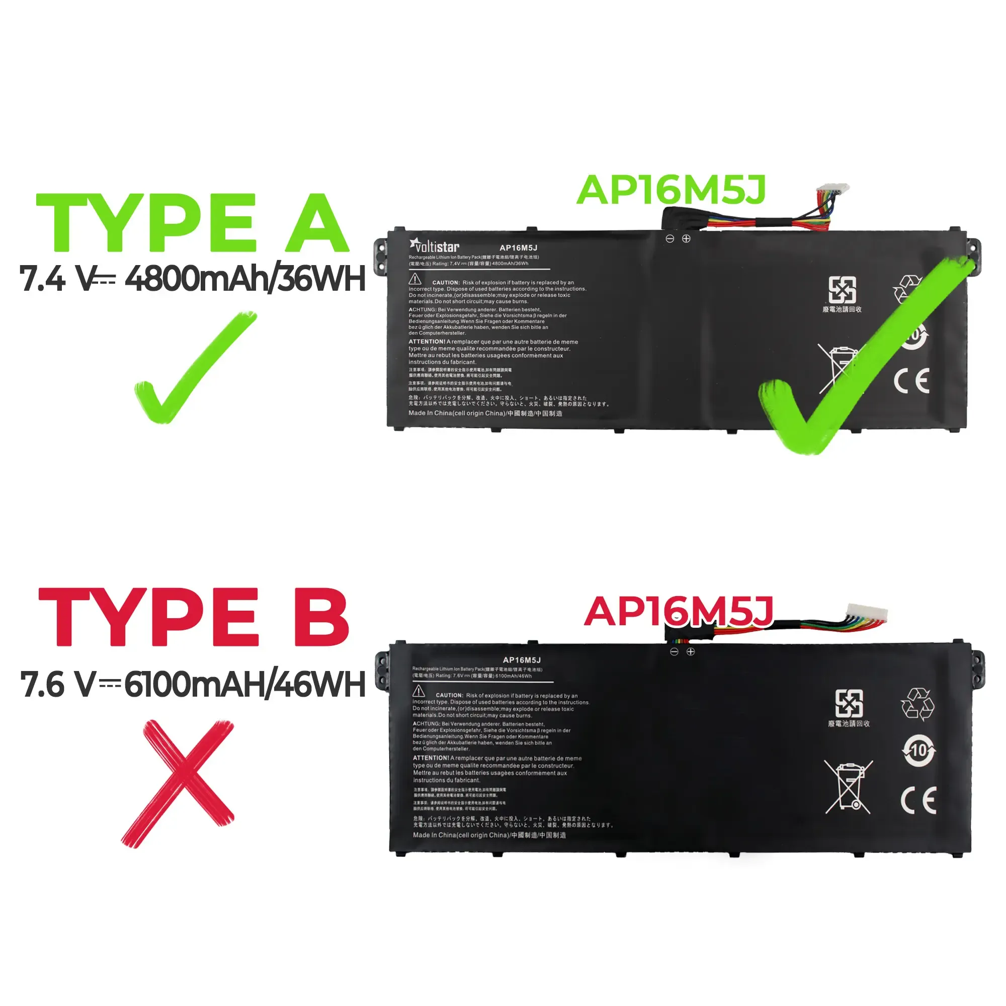 Avant tout achat, veuillez vérifier que la batterie dont vous avez besoin est bien celle que nous proposons. Pour éviter toute erreur et tout retour, comparez votre batterie d'ordinateur portable avec celle présentée sur les photos. Il est possible que la référence (P/N) corresponde, mais que les batteries ne soient pas physiquement compatibles.