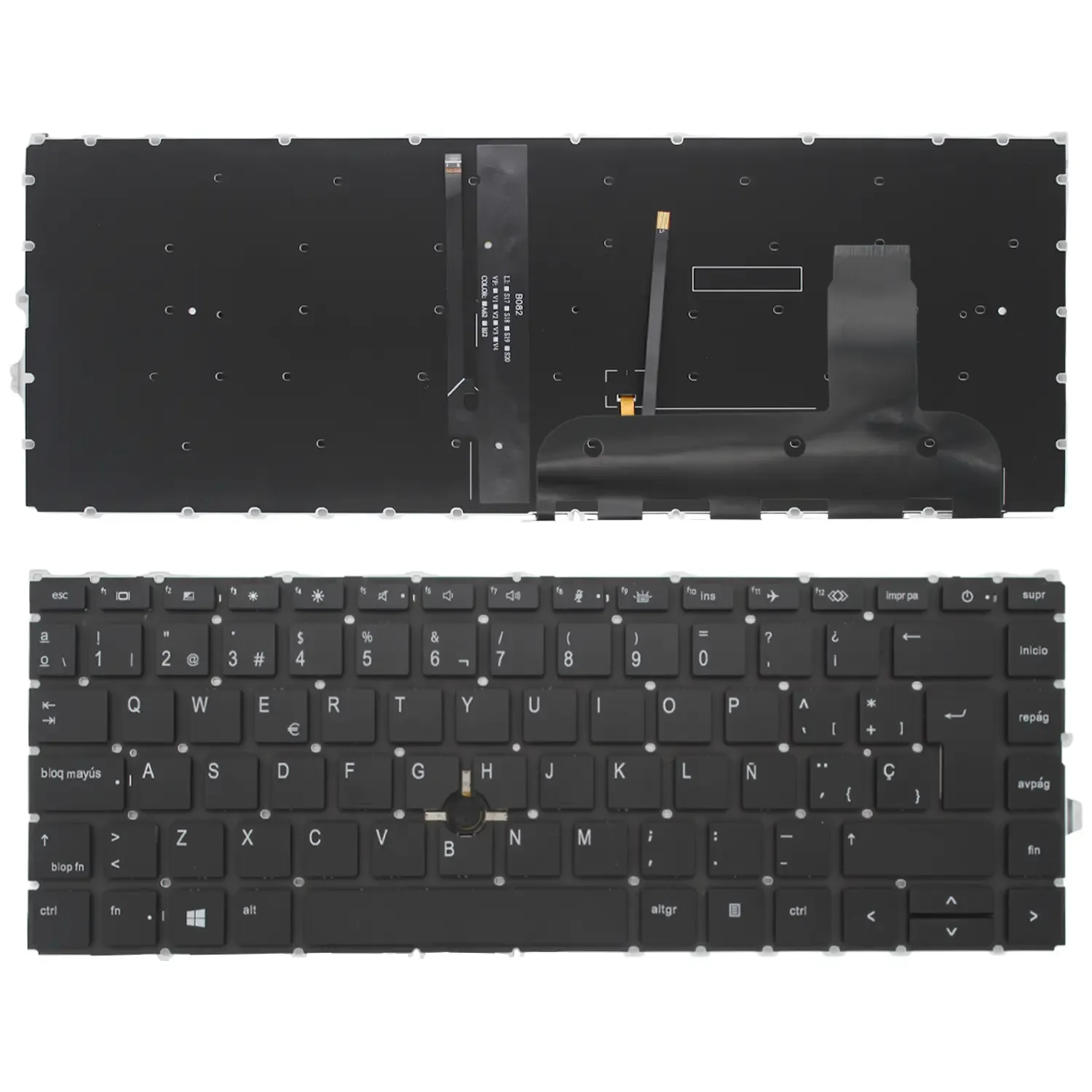 Ce clavier espagnol rétroéclairé pour ordinateurs portables HP est conçu pour les environnements professionnels et les utilisateurs recherchant une frappe précise et confortable. Il est doté d' un rétroéclairage pour travailler dans des conditions de faible luminosité et d'un PointStick intégré, une solution pratique pour naviguer sans quitter la zone de frappe des mains.