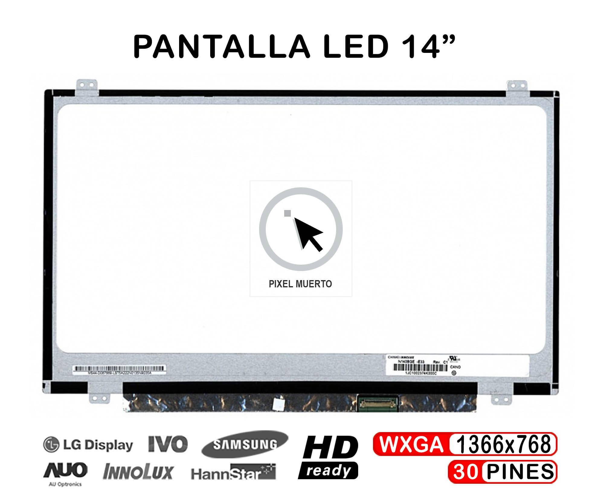 B140XTN02.D / N140BGE-E43 / HB140WX1-301 / B140XTN03.3 / LP140WH8(TP)(G1) / N140BGE-EB3 / NT140WHM-N31 / LP140WH8(TP)(D1) / B140XTN03.9 / B140XTN02.E / LP140WHU(TP)(H1) / LP140WH2(TP)(S1) / N140BGE-E33 / LP140WH2(TP)(T2) / N140BGA-EB3 / LP140WH2(TP)(SH) / N140BGE-EA3 / LP140WHU(TP)(B2) / HB140WX1-601 / B140XTN02.1 / B140XTN02.4 / B140XTN02.6 / LTN140AT31 401 / LP140WHU(TP)(A1) / LP140WH2(TP)(T1) / LP140WH2(TP)(TH) / LTN140AT30 / B140XTN02.9 / HB140WX1-401 / HB140WX1-501 / B140XTN02.A / LP140WHU(TP)(B3) / LP140WH2(TP)(BH) / B140XTN03.2 / LP140WHU(TP)(BH) / B140XTN03.4 / LTN140AT29 / LP140WH8(TP)(C1) / LP140WH8(TP)(A1) / LP140WH8(TP)(E1) / N140BGA-EA3 / LTN140AT39 / LTN140AT35 / NT140WHM-N41 / M140NWR6 R0 / M140NWR6 R1 / N140BGA-EA4 / NT140WHM-N44 V8.0 / B140HAN01.2 / LP140WF1-SPJ1 / LP140WF1-SPK1 / LP140WF1-SPU1 / B140RTN01 / N140FGE-EA2 / N140HGE-EAA / LTN140AT29-301 / LP140WH8(TP)(H1) / LP140WH8-TPC2 / MB140AN01-7 / LP140WHU / Lenovo FRU 00UP061 / 806363-001 / N140BGA-E83 C1 / N140BGA-E83 Rév. C1 / G140XTN01.0 / LCM16H6 / NSK-BY1SN 01 / SN20M63041 / N140FGE-E32 / B140RTN02.3 / B140RTN03.0 / LTN140KT13 B / LP140WD2(TP)(B1)