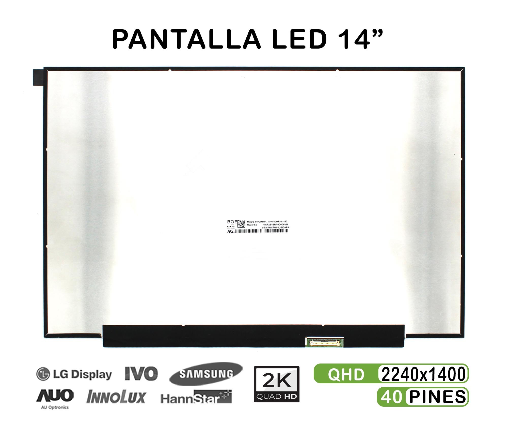 ÉCRAN LED DE 14" POUR ORDINATEUR PORTABLE NV140DRM-N63 2K 40 PINES