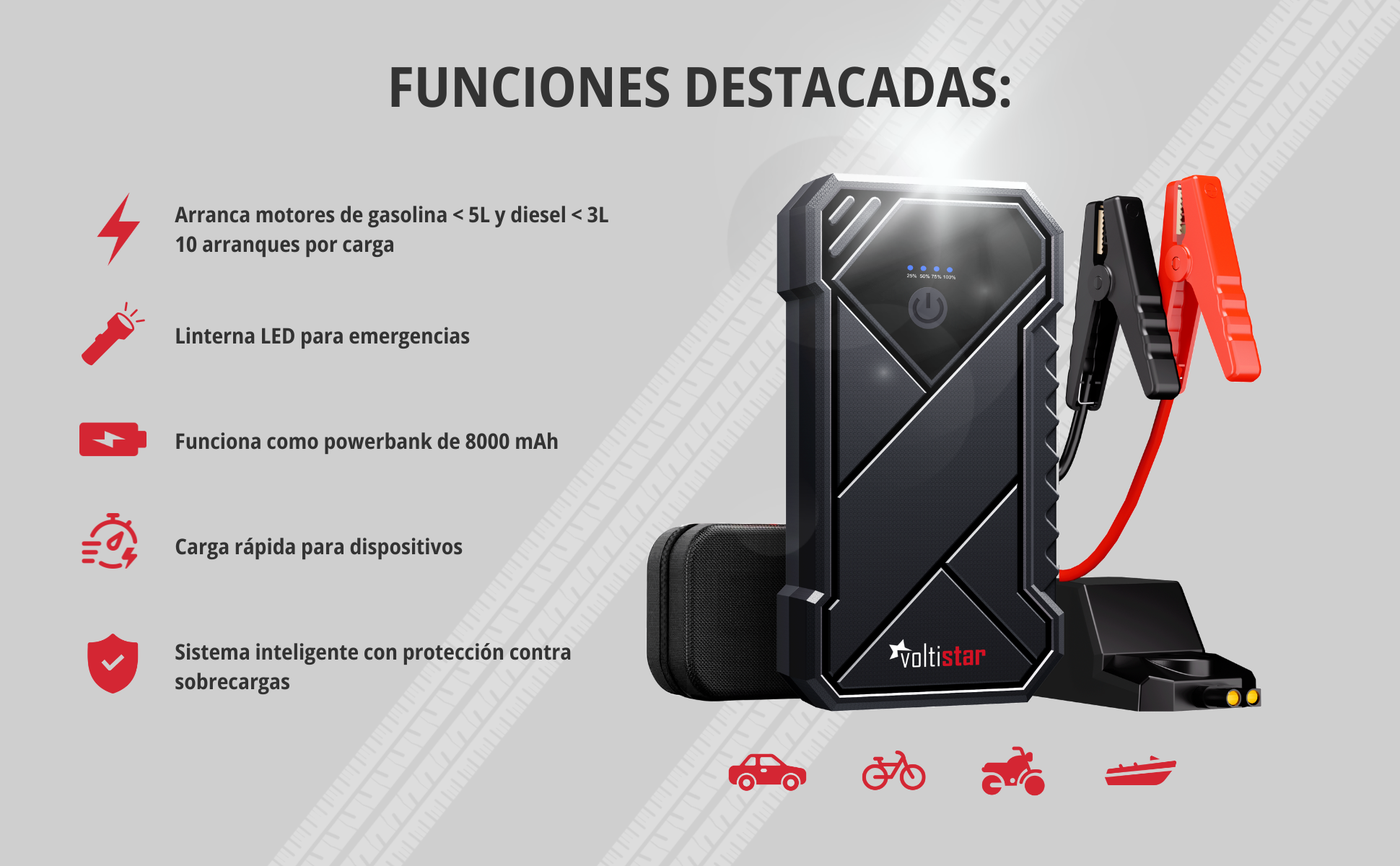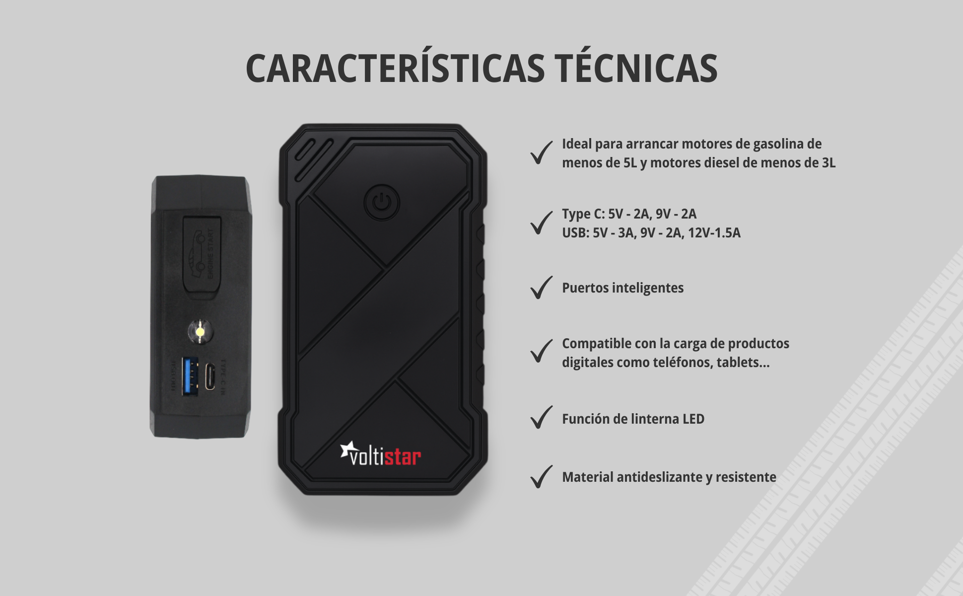 - Il peut démarrer des moteurs à essence de moins de 5,0 L (5000 cc) et des moteurs diesel de moins de 3,0 L (3000 cc).