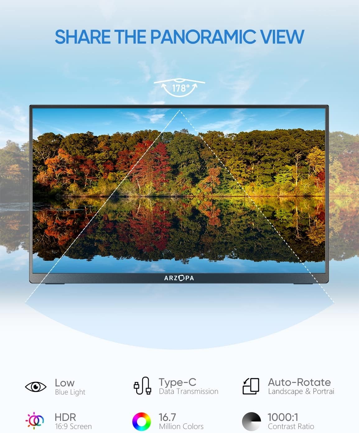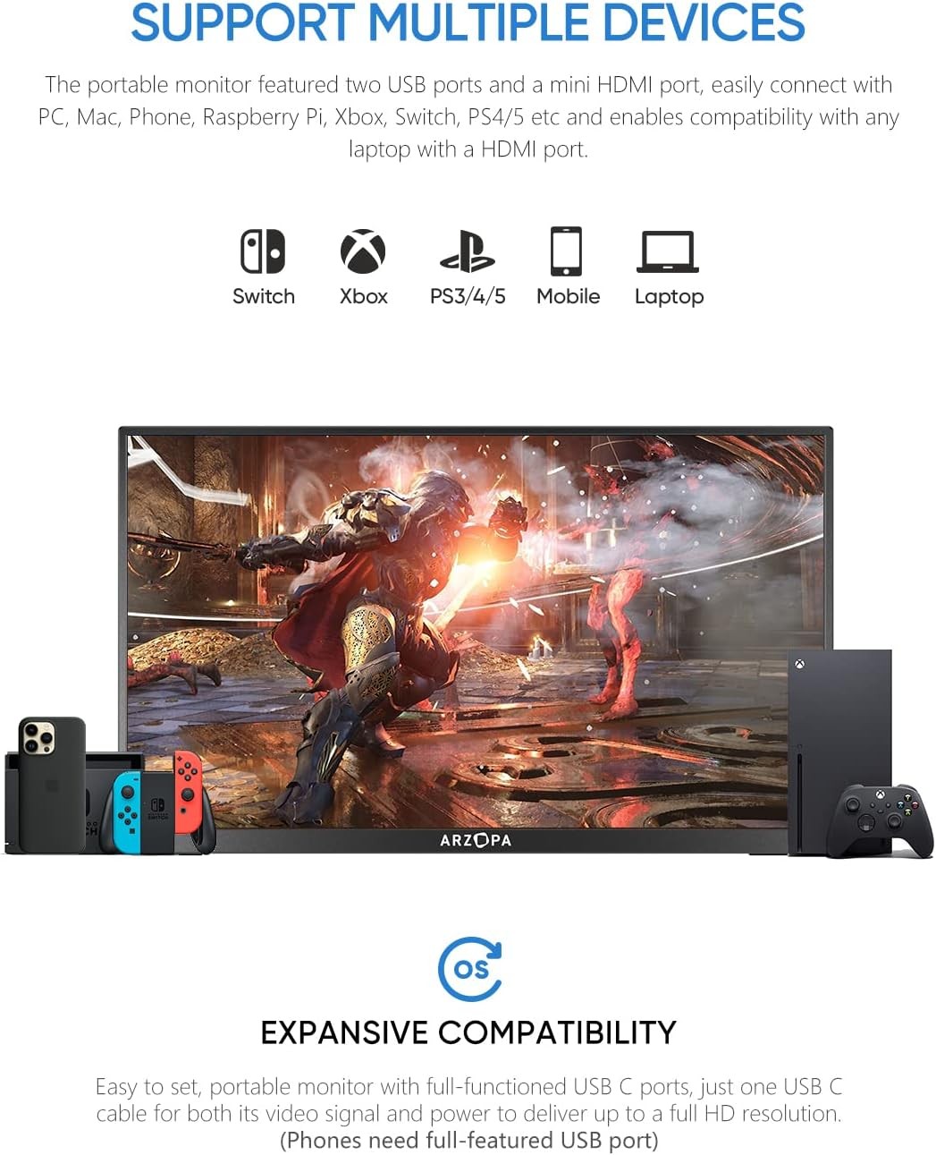 MONITEUR PORTABLE ARZOPA A1 GAMUT SLIM DE 14" FHD IPS AVEC HDMI USB-C POUR PC MAC XBOX PS4 PS5