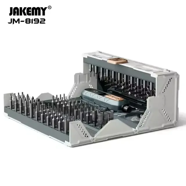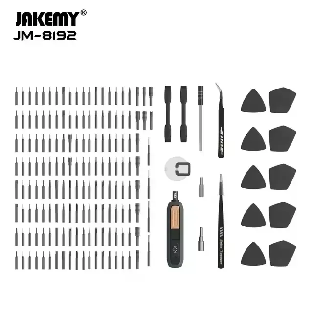 Le kit d'outils Jakemy JM-8192 est un ensemble complet de 180 pièces conçu pour les réparations de précision sur les appareils électroniques. Il comprend une grande variété d'embouts et d'accessoires en acier CR-V , traité au phosphate de zinc pour prévenir la rouille et garantir une durabilité supérieure.