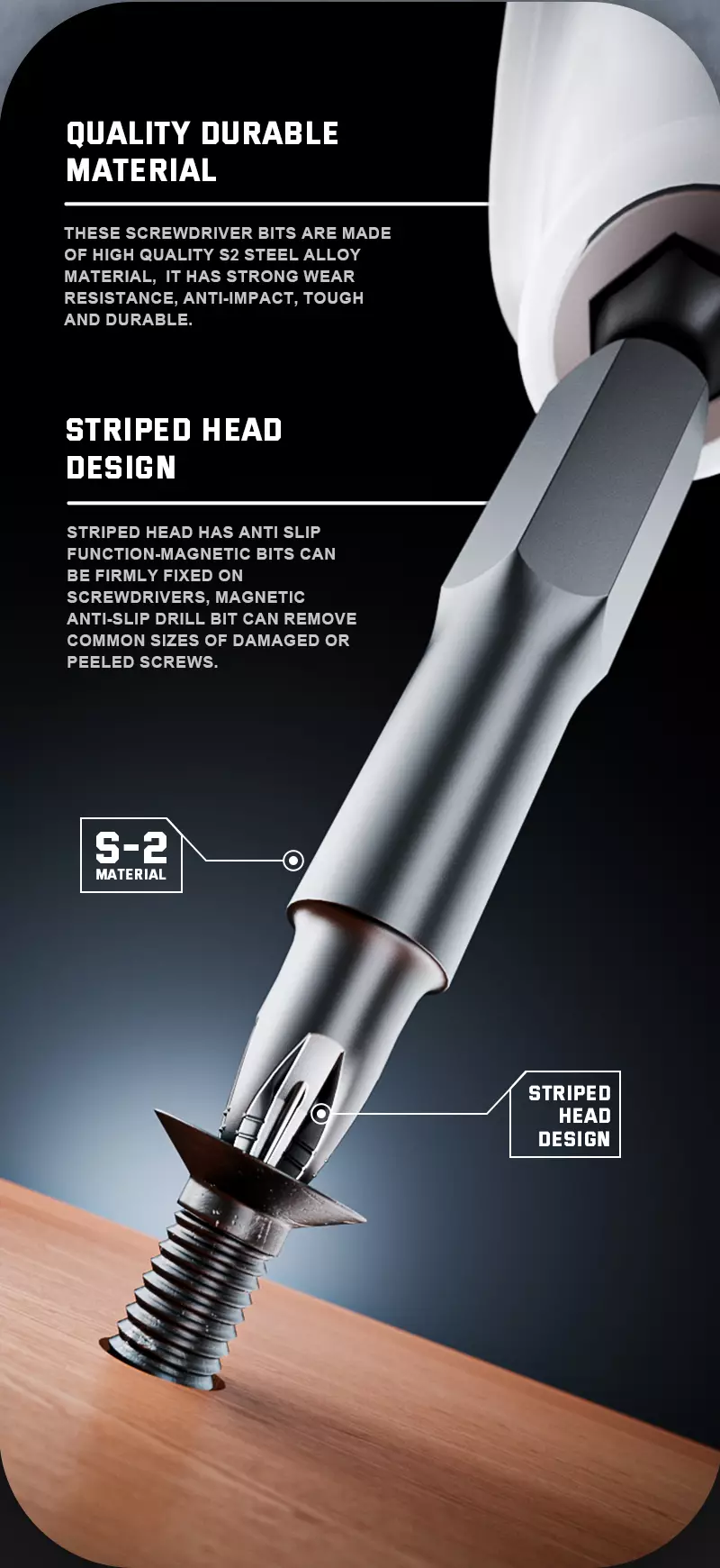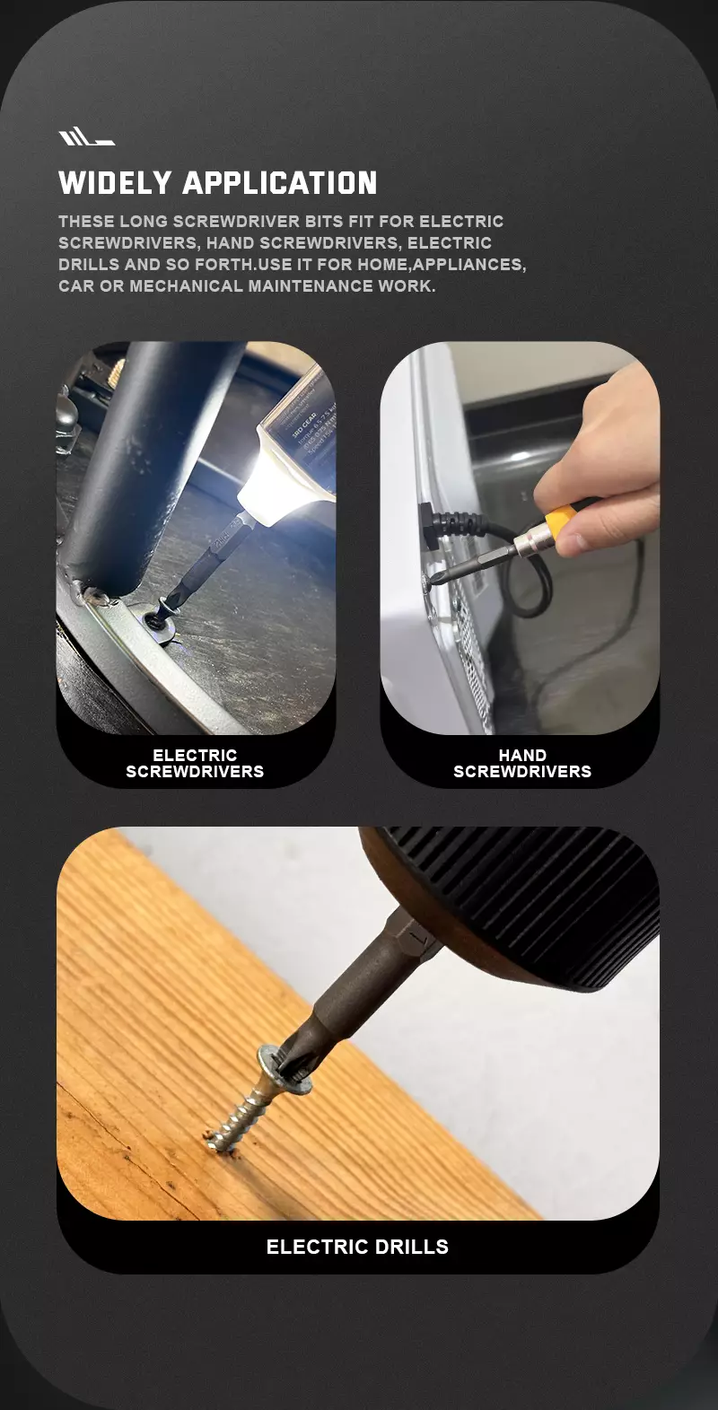 - Compatibili con la maggior parte dei portapunte e cacciaviti standard.